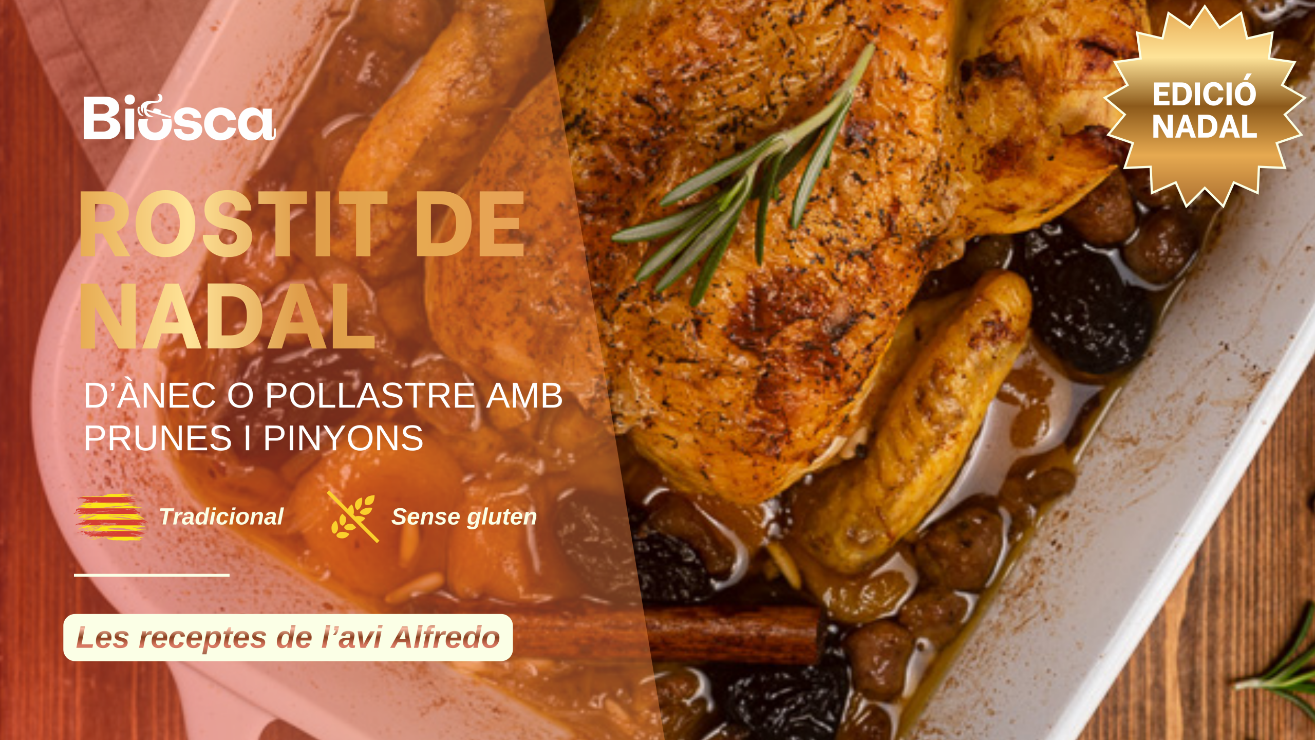 Un rostit clàssic de Nadal amb ànec o pollastre, prunes i pinyons. Un plat dolç i salat que omple la taula d’aroma i tradició catalana.
